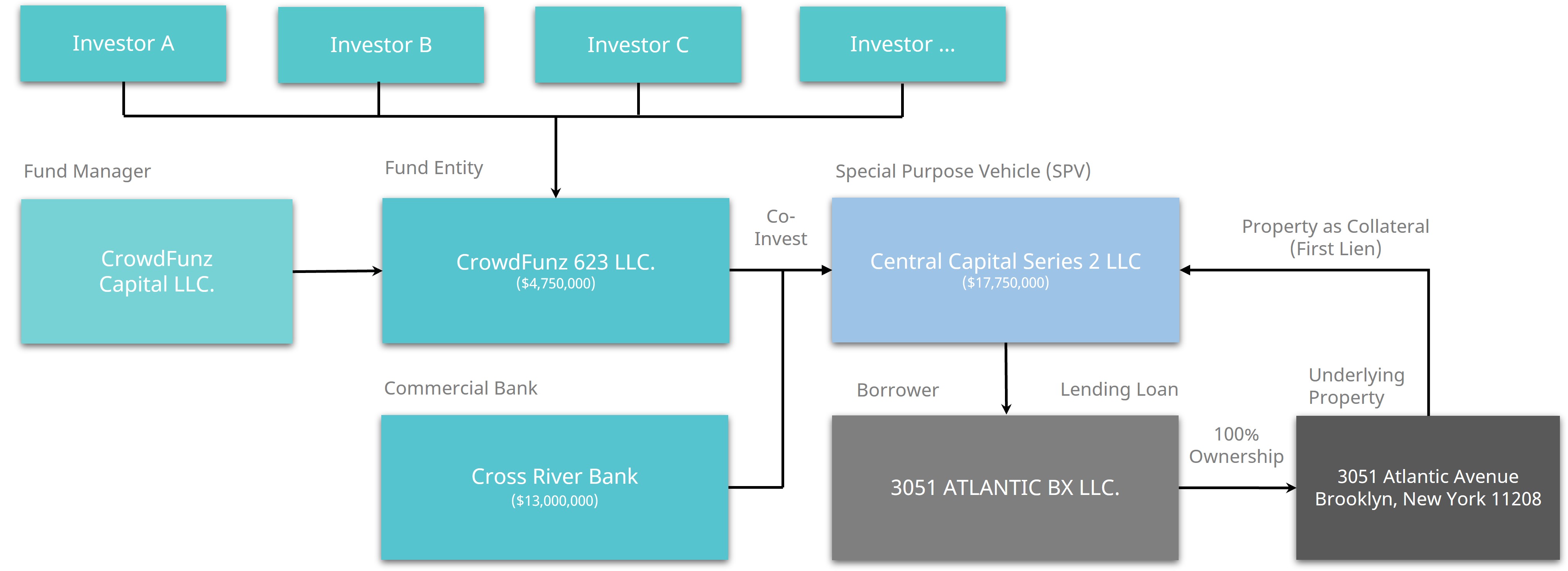 • CrowdFunz Fund 623 will partner with Cross River Bank to invest in the project’s Special Purpose Vehicle (SPV), providing a total of $17.75 million in first-lien mortgage financing. Of this amount, the 623 Fund will contribute $4.75 million and Cross River Bank will provide $13 million.